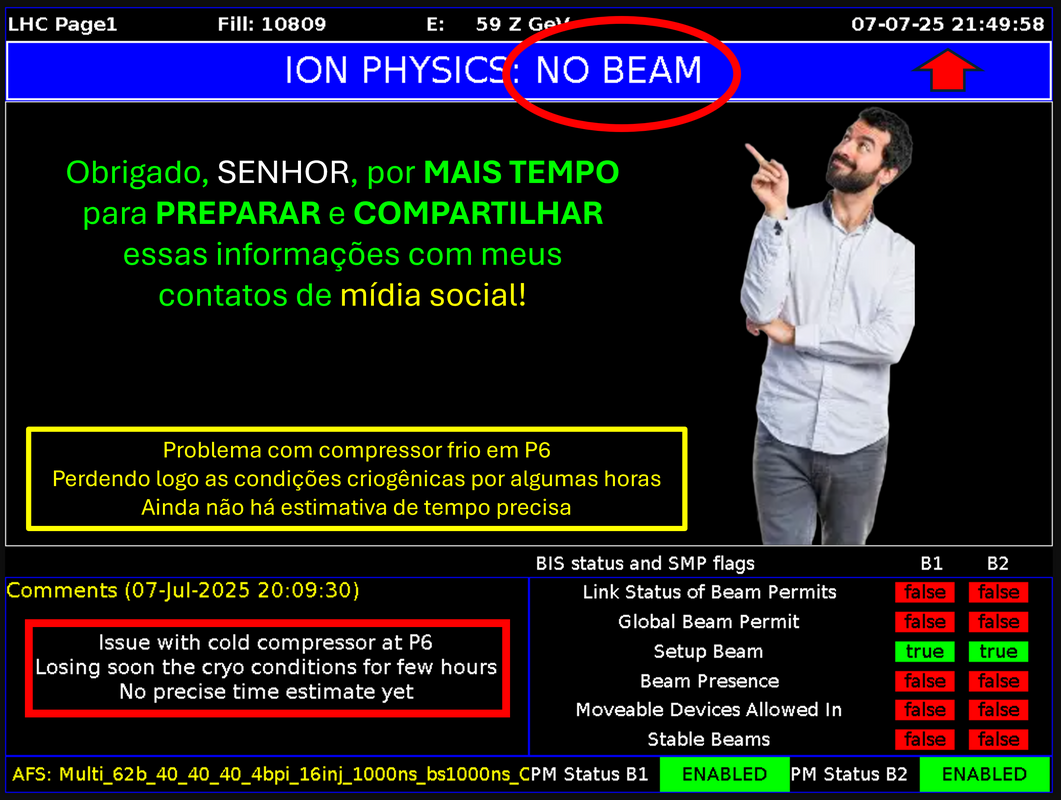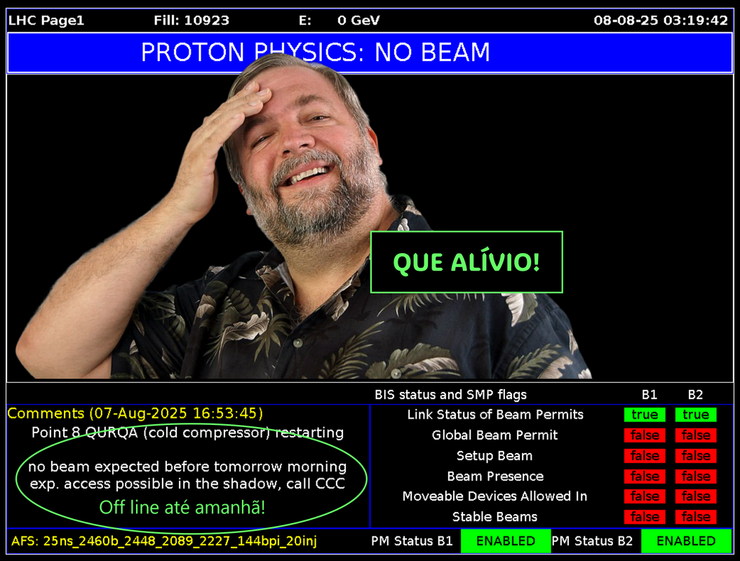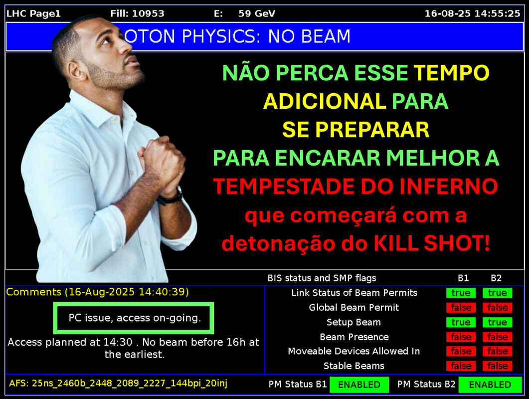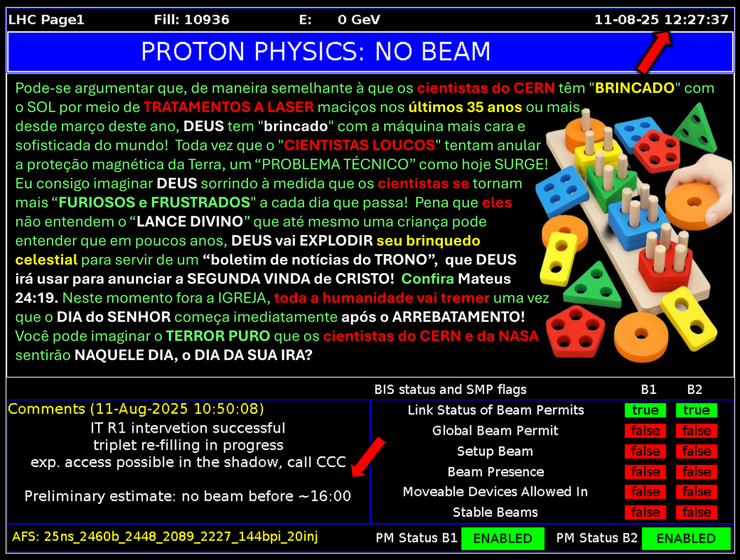 Há um desligamento de 12 horas programado para 20/08. Isso contrasta fortemente com as muitas paralisações que atormentaram a operação desde MARÇO! Na minha opinião, um "CSI" revelaria que as “FALHAS" através de olhos espirituais as "impressões digitais de DEUS". Em comparação, esse desligamento PODE significar que o CERN esteja quase no nível de atividade necessário para colapsar o escudo magnético da Terra. O TEMPO REVELARÁ!