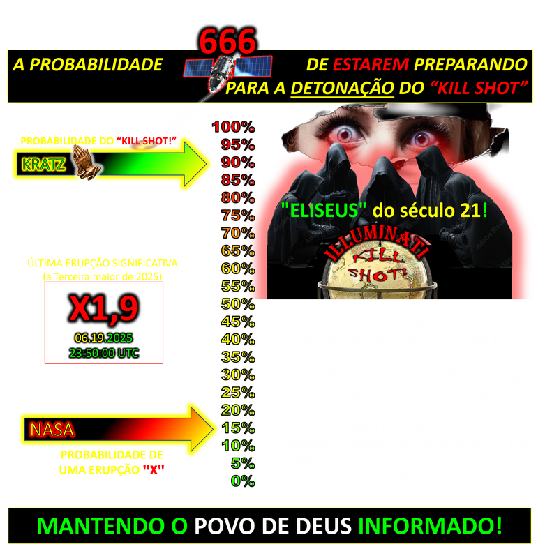 MAS os "dias de liderança" de Trump estão contados e acredito que estão prestes a chegar ao fim junto com QUALQUER FAVORABILIDADE POLÍTICA para o povo de DEUS EM TODO O MUNDO! O PLANO KILL SHOT que foi "CHOCADO no INFERNO" no início dos anos 1950 está prestes a se concretizar e ELIMINARÁ a LIDERANÇA GEOPOLÍTICA dos EUA de uma vez por todas em um NANOSSEGUNDO quando o KILL SHOT EMP / CME chegar!