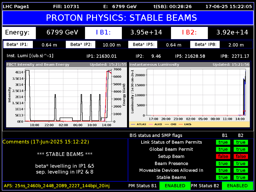 Depois de tentar acompanhar a ATIVIDADE SINISTRO no CERN por 12 anos, um esforço MUITO DESAFIADOR por parte deste leigo no assunto, há alguns meses, eu "tropecei" nesta página do site do CERN que supostamente dá uma ATUALIZAÇÃO CONSTANTE para o que está acontecendo dentro do COLISOR DE PRÓTONS entre a FRANÇA e a SUÍÇA.